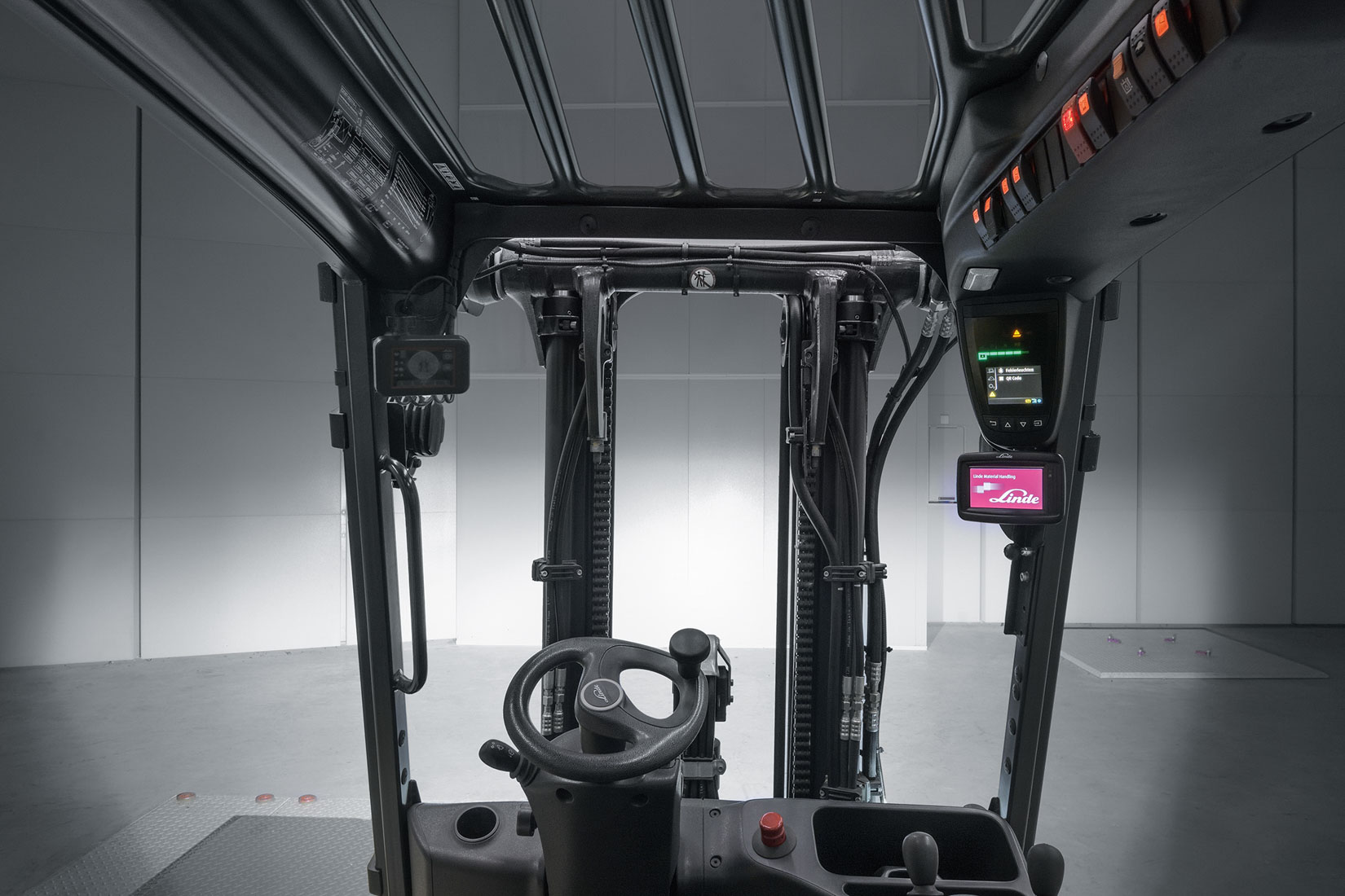 Korrekt oplysning af arbejdsområdet, som er tilpasset omgivelser og opgaver, er af afgørende betydning for at truckføreren kan udføre sit arbejde bedst muligt. Hvis man for eksempel bruger standard arbejdslys som kørelys kan det føre til ubehagelige eller farlige situationer, fordi man utilsigtet kommer til at blænde fodgængere eller andre truckførere. Derfor er det muligt at vælge en blændfri løsning med Linde NO-GLARE LED arbejdslys. Den særlige blændfri optik skaber et godt oplyst arbejdsområde uden at blænde i for eksempel køreområder.