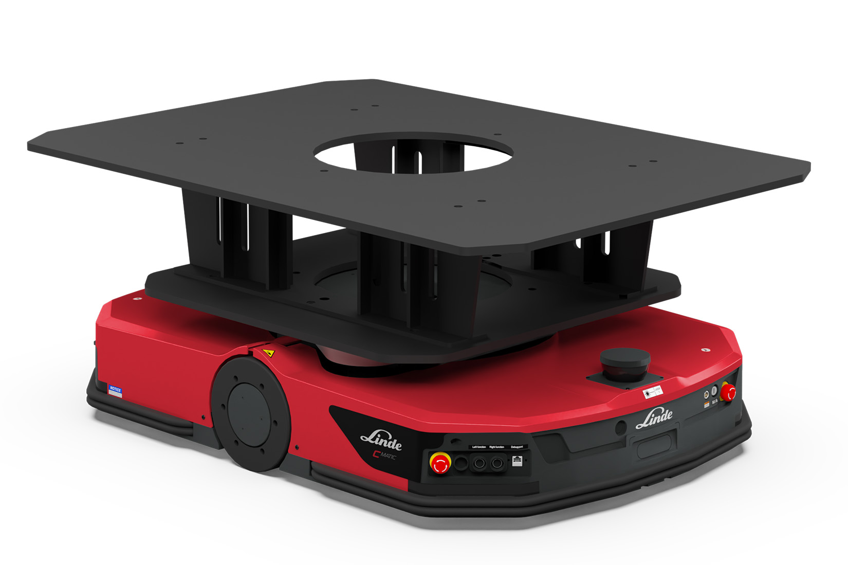 AGV-platformen Linde C-MATIC er en AMR-robot, der er ideel til transport af materialer over korte og mellemlange afstande i trange områder. C-MATIC kan køre ind under lasten, der er placeret på vogne. Det gør det nemt at flytte gods mellem faste omladestationer, transportbånd eller andre omlastningspunkter.
