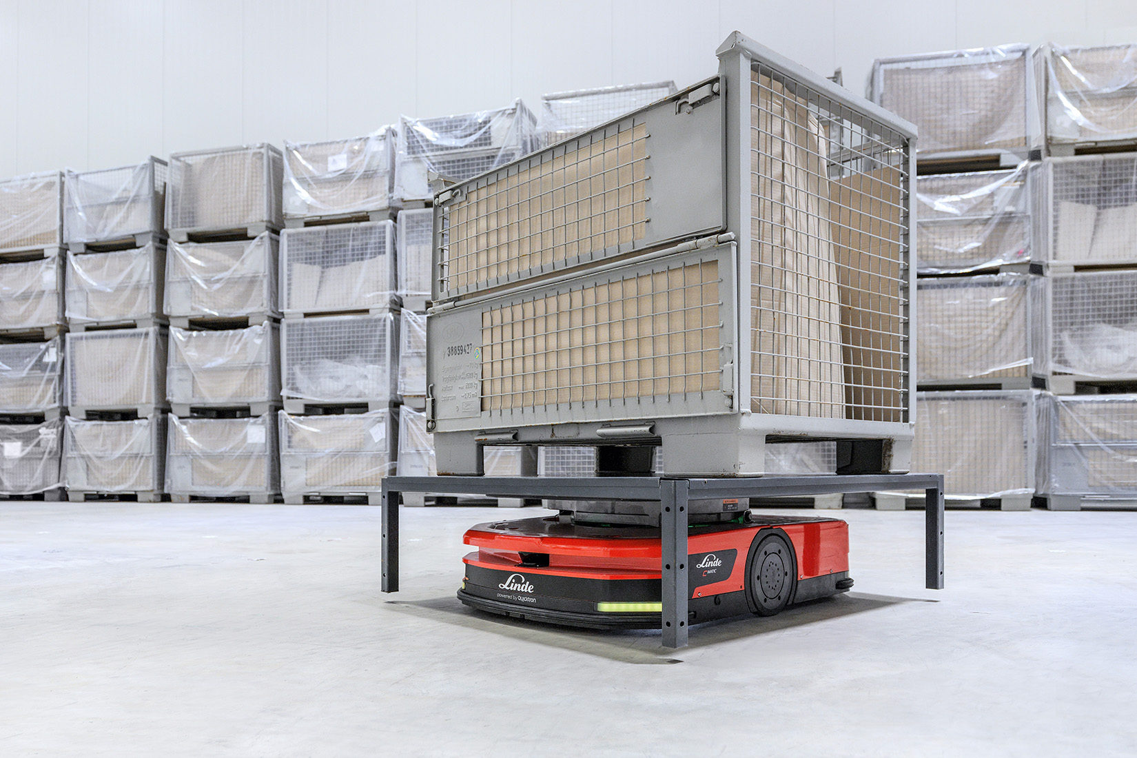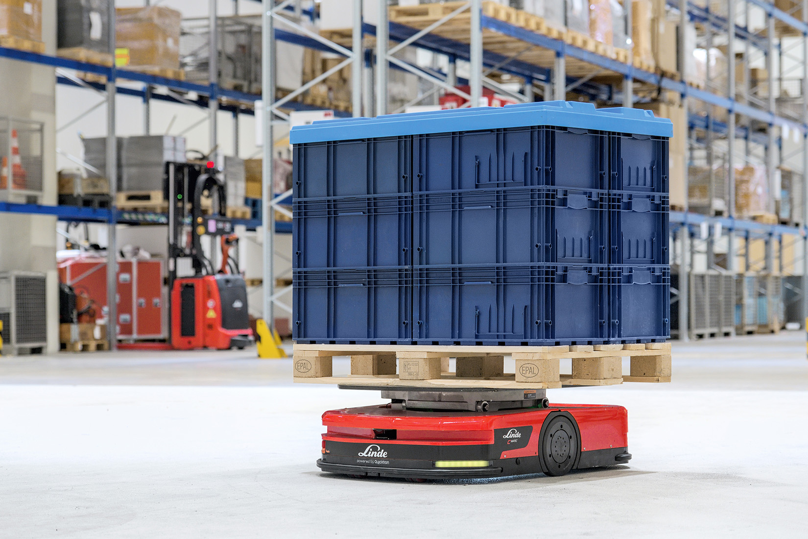 Transportrobotten Linde C-MATIC HP er en AMR-robot, der er ideel til automatiserede processer i blandede driftsmiljøer. Den kan arbejde i samme område som mennesker, manuelle gaffeltruck og andre automatiserede industrikøretøjer – sikkert og effektivt.