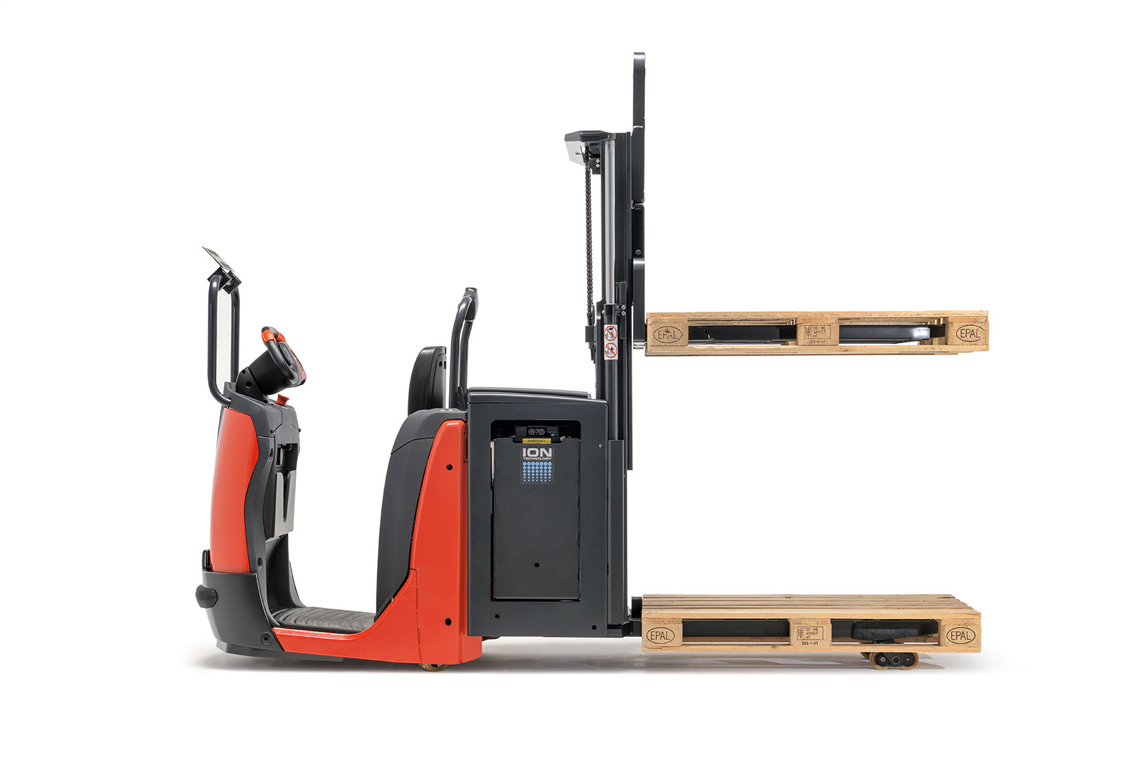 N20 D plukketrucken med dobbeltstablerfunktion gør det muligt at læsse eller afsætte to paller samtidigt. Takket være den ergonomiske løftefunktion kan føreren også plukke tunge varer højt oppe uden at belaste ryggen.