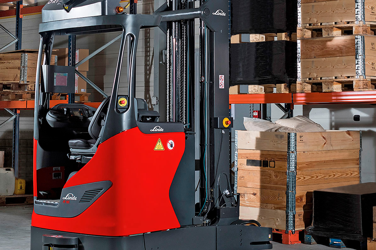 Linde R-MATIC AGV-reachtruck kan håndtere last på op til 1.600 kg og lagrer samt plukker i højder op til 11 meter.
