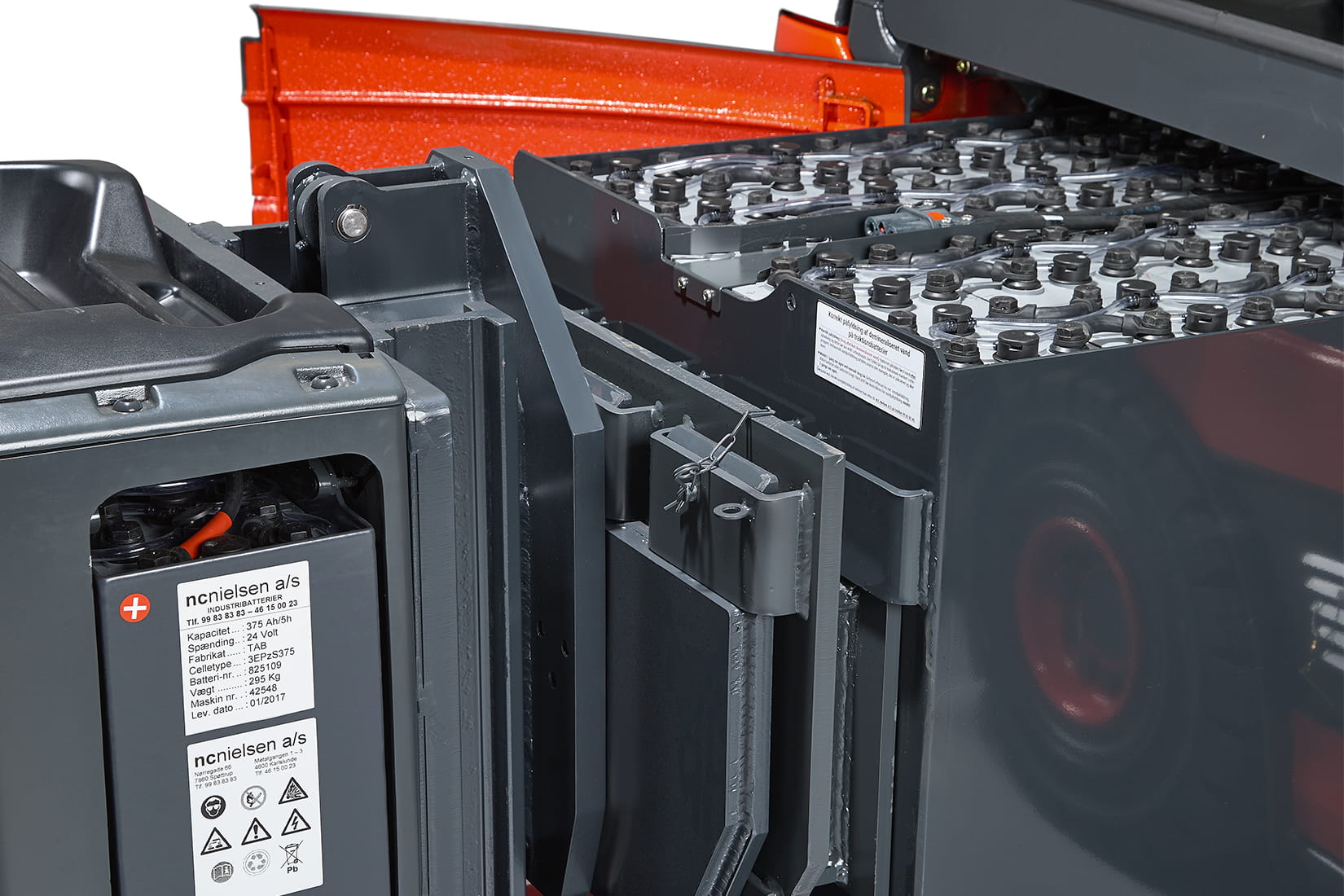Batteriskifteren er opbygget med en Linde el-truck, som efter den aktuelle opgave kan monteres med adapterplader i forskellige størrelser. Pladerne bliver skræddersyet specifikt til formålet, og bliver konstrueret til de aktuelle batterier i drift.