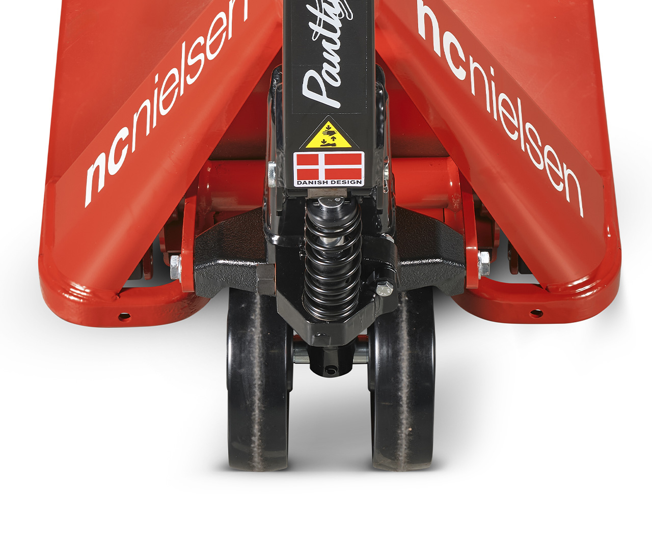 NCN BNQ1140 er en robust og driftssikker manuel palleløfter 2500 kg, udviklet til daglig brug i lager, logistik og produktion. Denne palleløftevogn er udstyret med boogie nylonhjul (tandemhjul), som sikrer stabil kørsel og lav rullemodstand på hårde og jævne gulve.